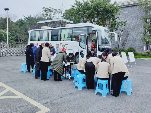 1月3日上午,广安市献血中心献血车开进院校,教职工纷纷前来献血。经过填写献血信息表、测血压、采血化验等环节,教职工在专业医护人员的安排下进行献血。冬季虽冷,但丝毫没有影响大家的献血热情,此次院校共有36人参与献血,27人献血成功,献血总量达9100毫升。