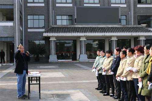 1月31日下午3时许,院校综合楼突然冒出滚滚橙色烟雾,嚁……,随着一阵急促的哨声,全体教职工手拿湿毛巾捂住口鼻,快速有序的穿过浓烟到达楼前广场……。这是院校春节前开展的消防演练。